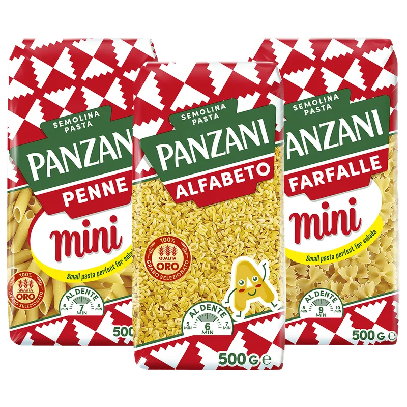 Panzani Mini Pasta is the ideal solution for small appetites and large gourmet treats. Their fun size means they can suit your every whim, while retaining the quality and unmistakeable flavour of Panzani pasta. Perfect for quick, delicious dishes!